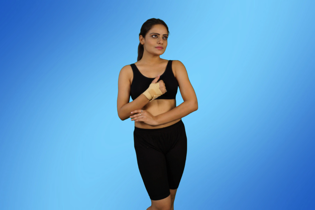 Material: Durable elastic and breathable fabric with soft foam lining and embedded malleable splint for wrist and thumb support